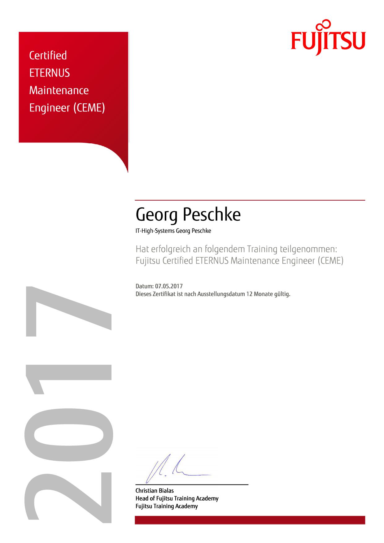 Unser Unternehmen ist Fujitsu Select Expert und Service Maintenance zertifiziert. Als unser Kunde können Sie während der Projektplanung, Realisierung, Administration und späterer Wartung von unseren zahlreichen Qualifizierungen und Erfahrungen in ähnlichen Projekten profitieren.